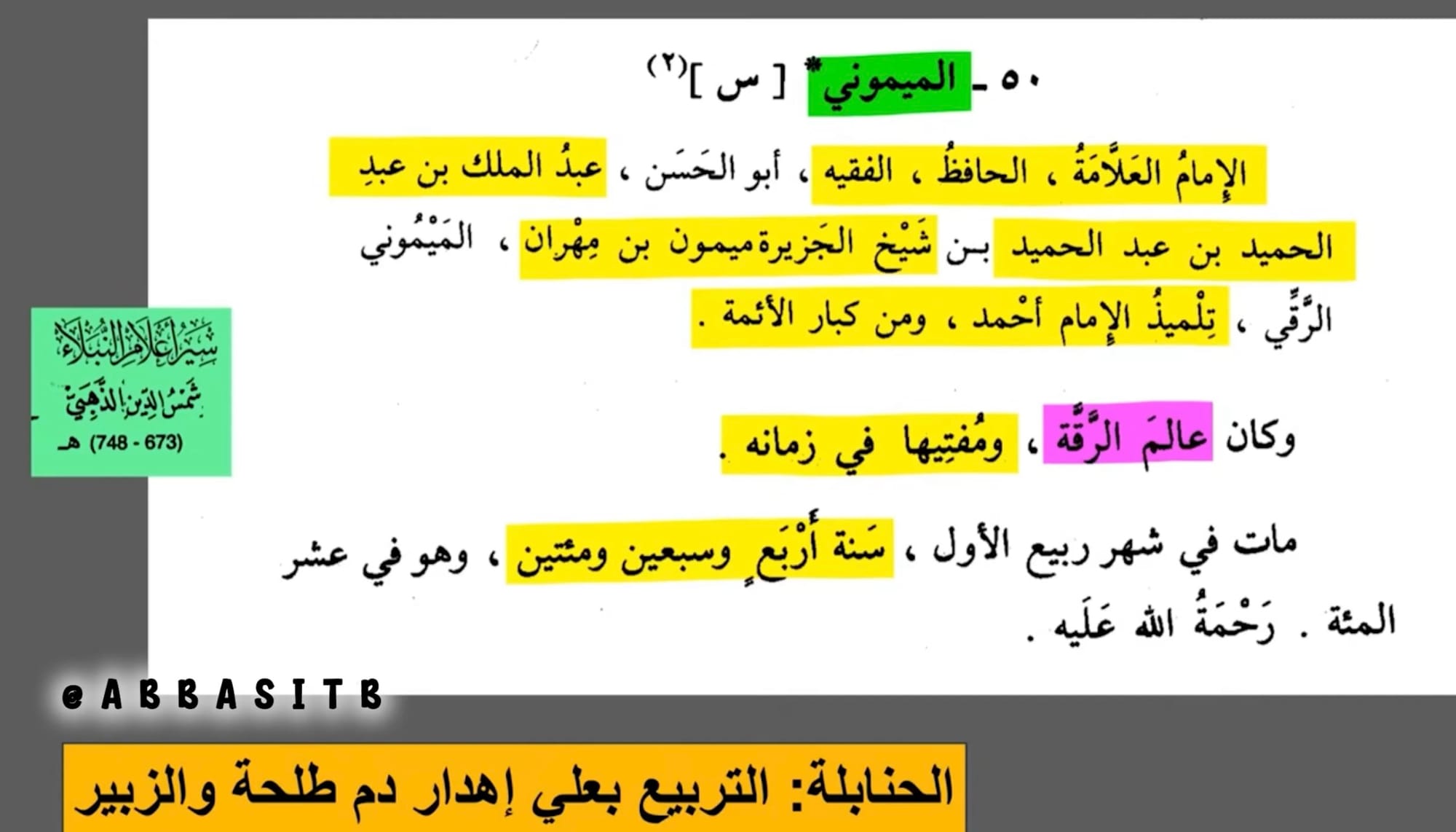 أحمد بن حنبل يتهم أمير المؤمنين يزيد بن معاوية -المبشر بالجنة- بأنه نهب المدينة المنورة وقتل الصحابة ] :-
